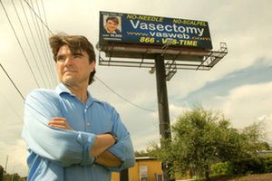With a perfected technique, the doctor hits the road in Florida peddling no-scalpel and no-needle vasectomies to guys craving peace of mind and a quiet house. The camera rolls capturing Dr. Stein loading and unloading totes of supplies for his pop-up vasectomy clinics advertised by portable signs in parking lots and strip malls. He takes a new patient about every fifteen minutes. His follow-up phone calls after dark take place at 70 mph on the tollway. Dr. Stein is a busy man.
